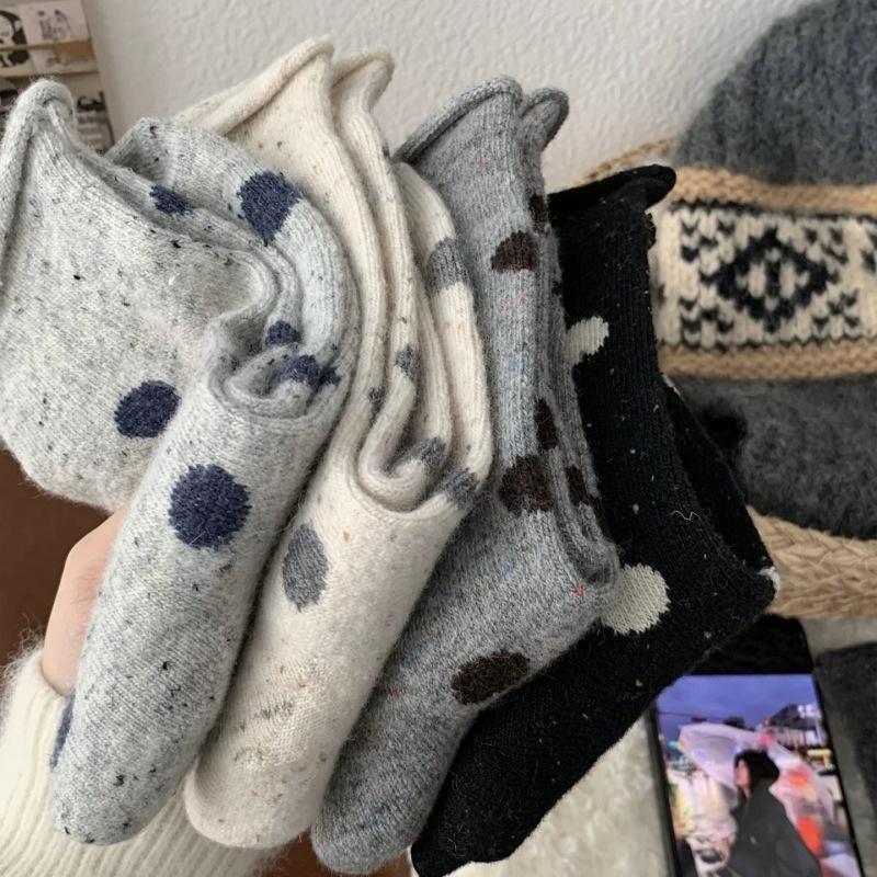 Женские осенне-зимние утолщенные бархатные теплые носки-гольфы в горошек из шерсти с точечным узором