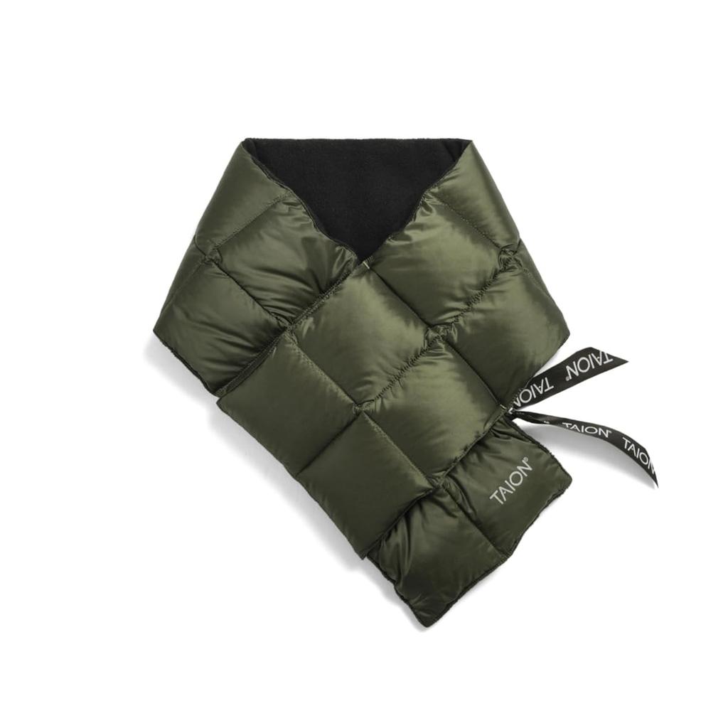 Это классический пуховый шарф TAION, который раскупают каждый год.. Легкий и теплый, это идеальный пуховик для холодной погоды. Имеет светоотражающий принт TAION.
