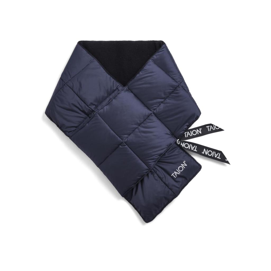 Это классический пуховый шарф TAION, который раскупают каждый год.. Легкий и теплый, это идеальный пуховик для холодной погоды. Имеет светоотражающий принт TAION.