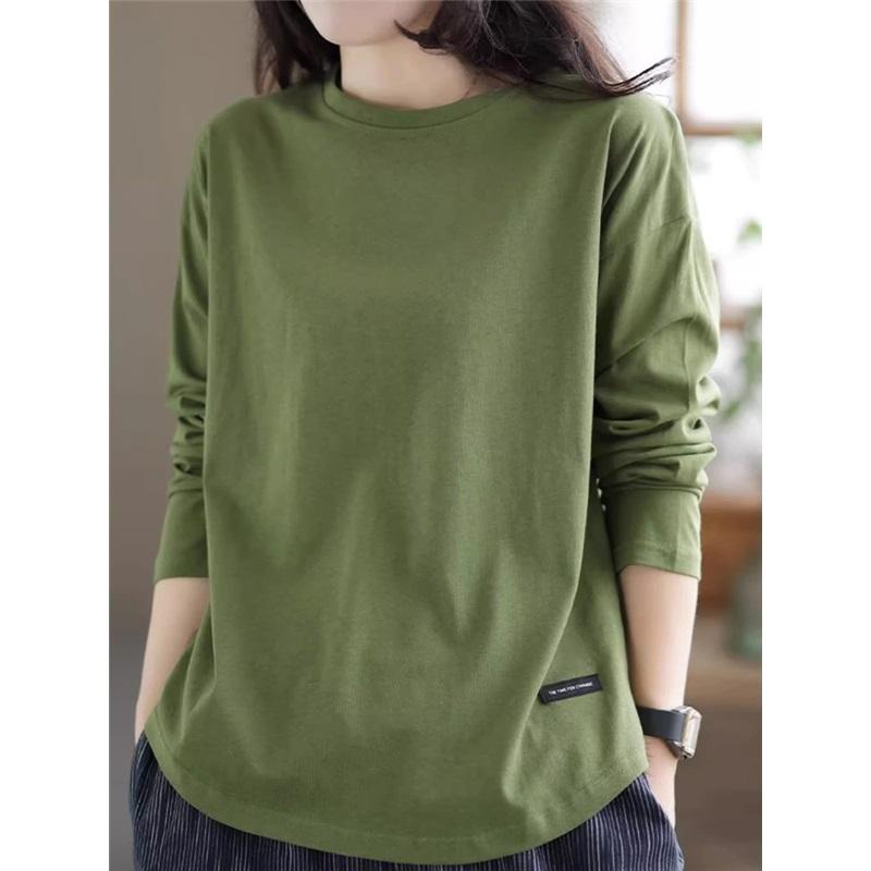 Винтажная однотонная футболка с длинным рукавом свободного кроя для осени и зимы — купить товар онлайн с бесплатной доставкой по всему миру!