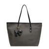 - **Детали структурированного дизайна**: Представляет собой стильную сумку-тоут из ПВХ, с классическим узором «гусиная лапка», контрастными кожаными ручками и дополнительным шармом.. Он поддерживает различные варианты переноски (ручной, плечо). От него веет преппи и шикарным очарованием. Четыре варианта стиля (с/без шарма в черном/коричневом) удовлетворять разнообразным стилевым предпочтениям.