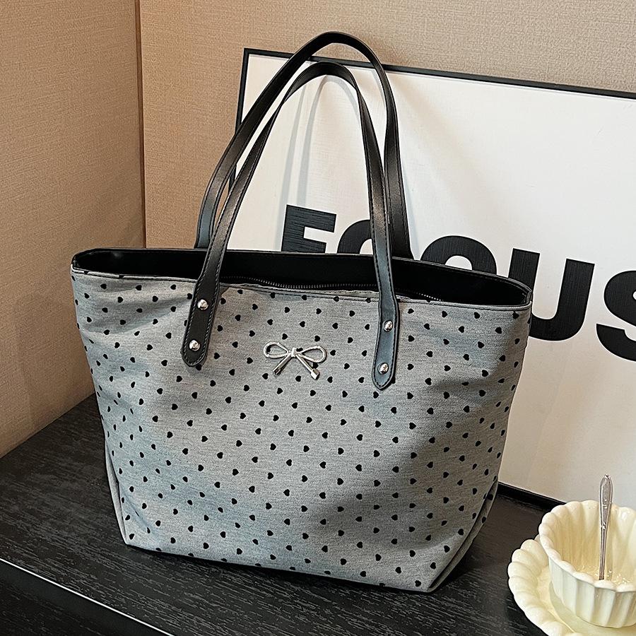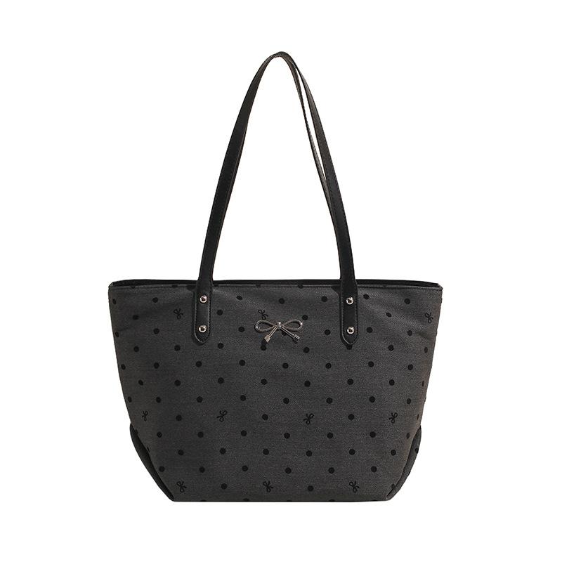 - **Детали структурированного дизайна**: Особенности: стильный силуэт сумки-тоут из хлопка, игривый горошек и контрастные кожаные акценты на ручках. Поддерживает способ ношения на одном плече. Он излучает непринужденный и преппи шарм. Два нейтральных цветовых варианта удовлетворяют разнообразным стилистическим предпочтениям.