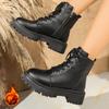 Модная женская обувь Удобные туфли на низком каблуке Кожаная обувь Модные ботинки на шнуровке на платформе Боевые ботинки Женские зимние теплые ботильоны из короткого плюша