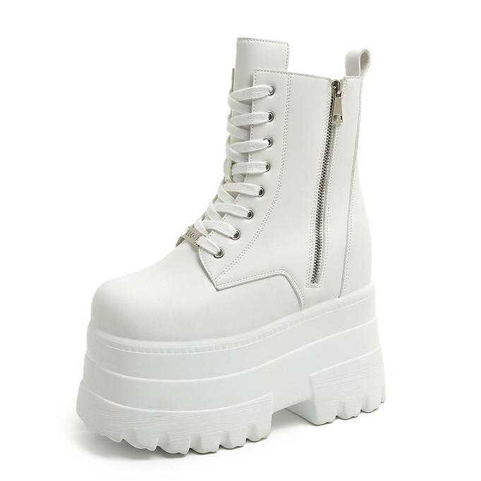 Модные 14СМ Новые Ботильоны Обувь Панк Натуральные Ботинки Женские Мотоциклетные Ботинки Платформа Женские Модные Ботас Зима Осень Большой Размер 43