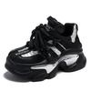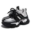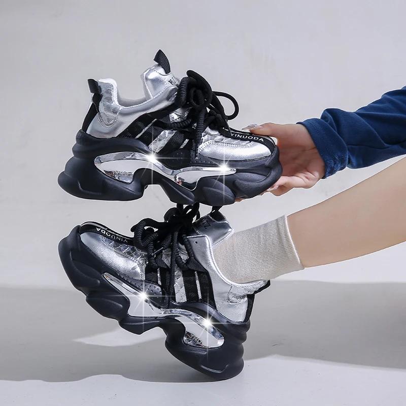 Модные осенние кроссовки на массивной подошве 8,5 см для женщин 2025, спортивные лоскутные кожаные туфли на высокой платформе, женские кроссовки на шнуровке с толстой подошвой, кроссовки "папины"
