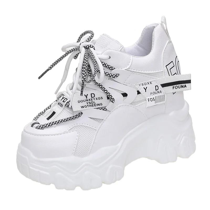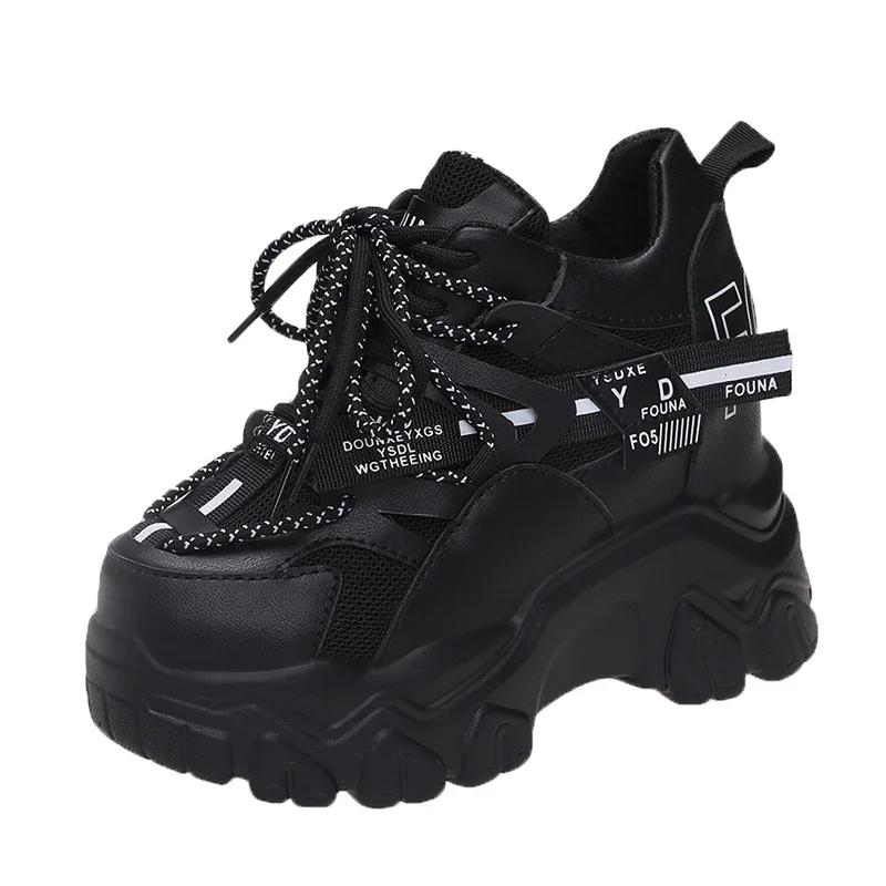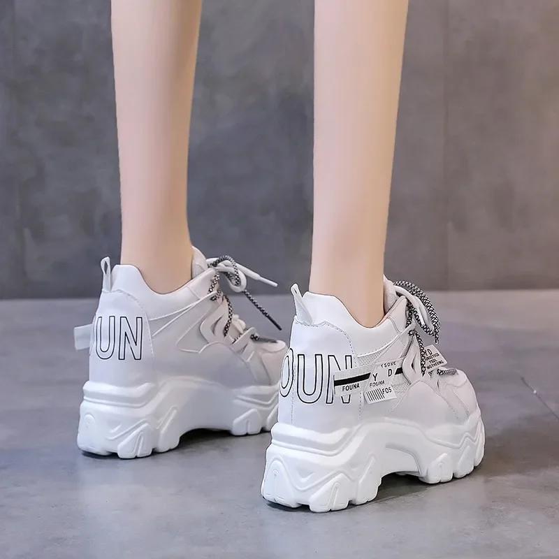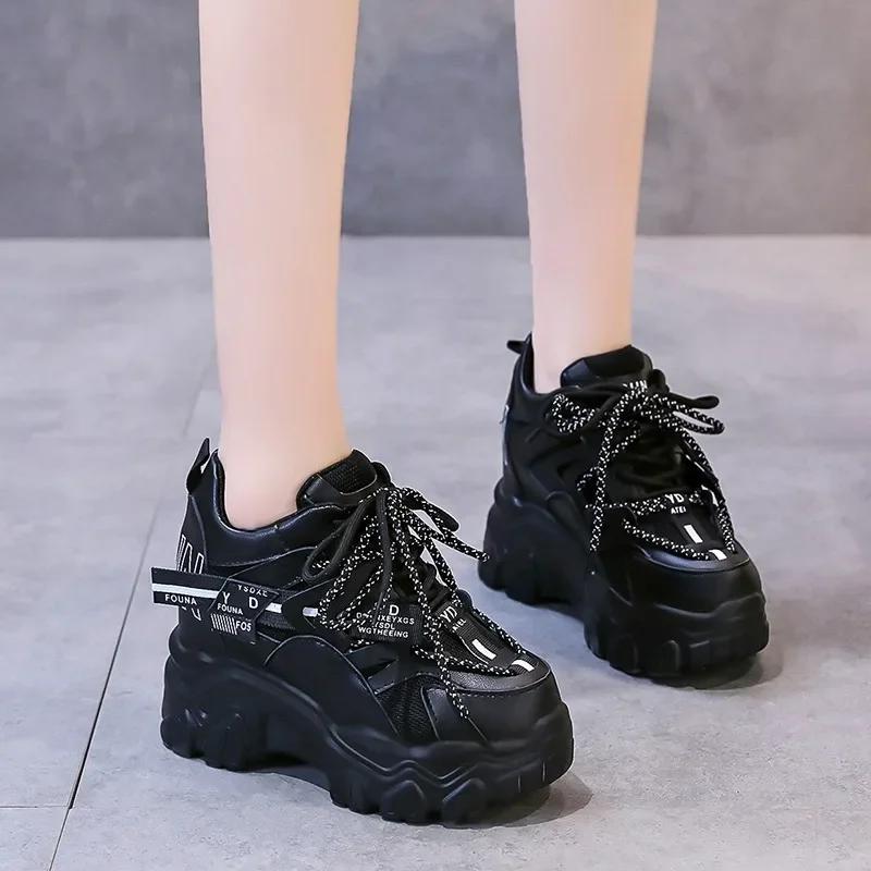 Модная 9 см Осенняя женская повседневная спортивная обувь Обувь на высокой платформе на шнуровке Удобные женские массивные кроссовки Дышащая обувь для улицы