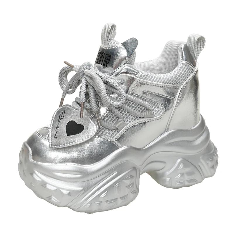 Модные весенние женские повседневные кроссовки на нескользящей платформе 10 см, осенние спортивные кожаные туфли на высоком каблуке, дышащие кроссовки на толстой подошве