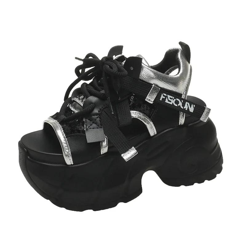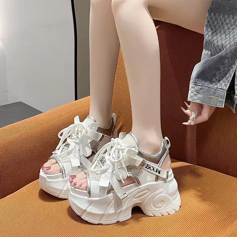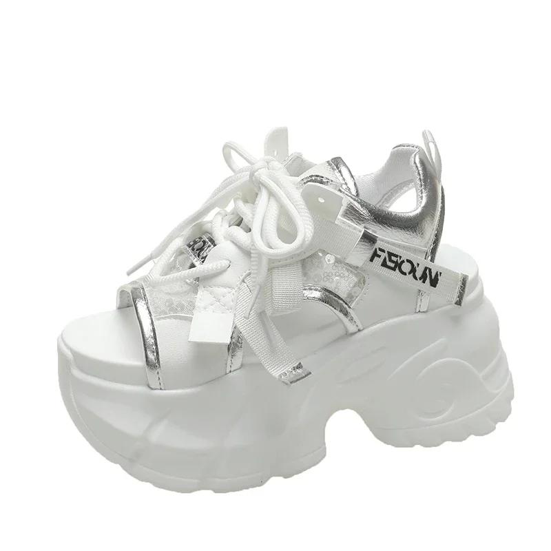 Модные летние кавайные женские кроссовки сетчатые на высокой платформе белые туфли на каблуке танкетке сандалии дышащие женские повседневные летние туфли