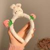 Очаровательная плюшевая повязка на голову с кроличьими ушками-сердечками для умывания лица - Милый мультяшный аксессуар для волос