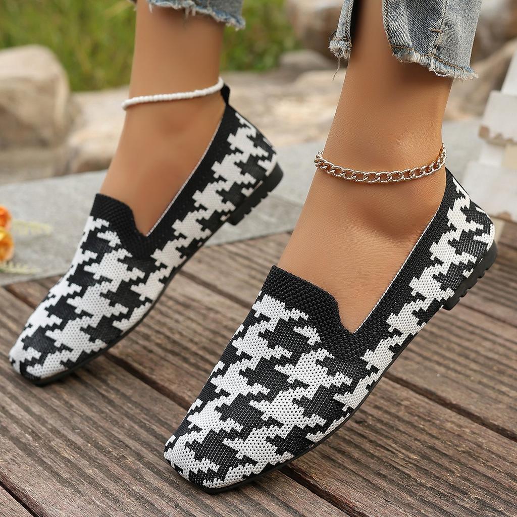 Модные женские балетки Весенне-осенние плоские повседневные туфли для женщин Вязаные балетки с круглым носком Модные лоферы с принтом Zapatos De Mujer