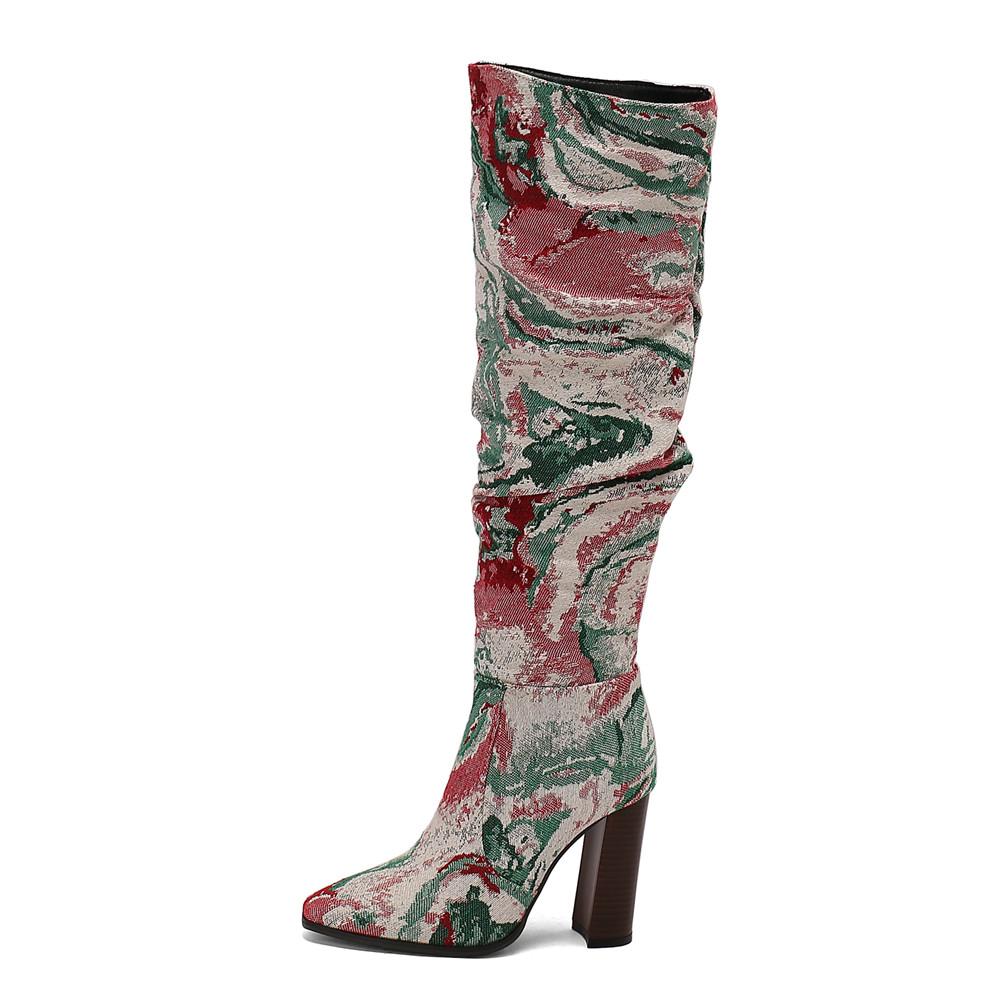 Модные женские ботфорты с острым носком, блочным каблуком 10 см, высотой до колена, плиссированные ботинки, женская обувь 2025 Новые Zapatos De Mujer