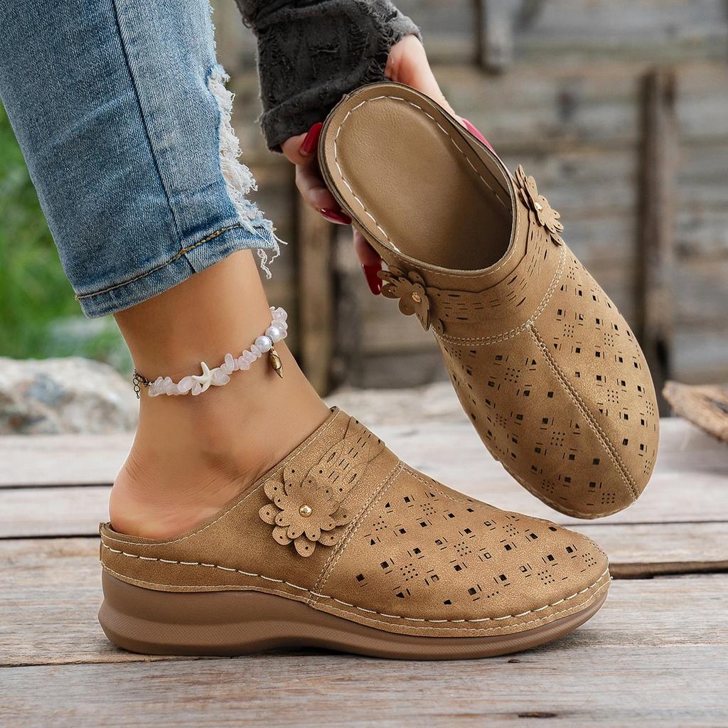 Мода 2025 Новые женские мюли-шлепанцы на танкетке большого размера, сандалии для улицы на толстой подошве, женская легкая обувь с вырезами, женские шлепанцы