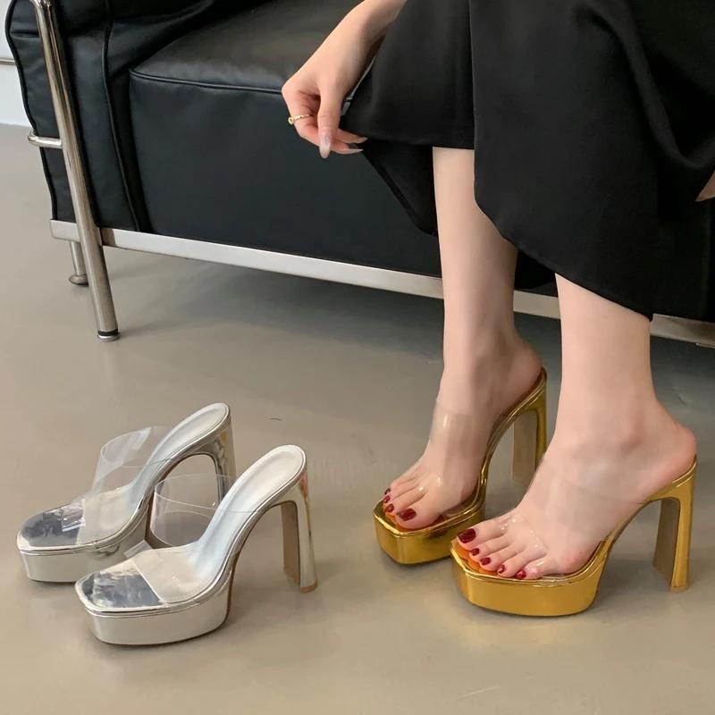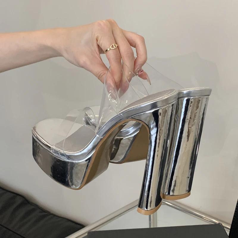 Модные летние женские шлепанцы Eilyken на экстремальной платформе с открытым носком и массивным высоким каблуком, из прозрачного ПВХ, модные слайды, женская обувь
