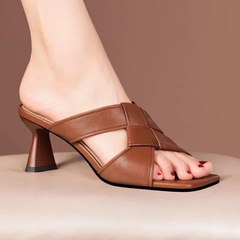 Модная женская обувь 2025 Высокое качество Открытый носок Женские шлепанцы Мода Уличная одежда Летняя Новинка Лучший продавец Элегантные Легкие Высокие каблуки