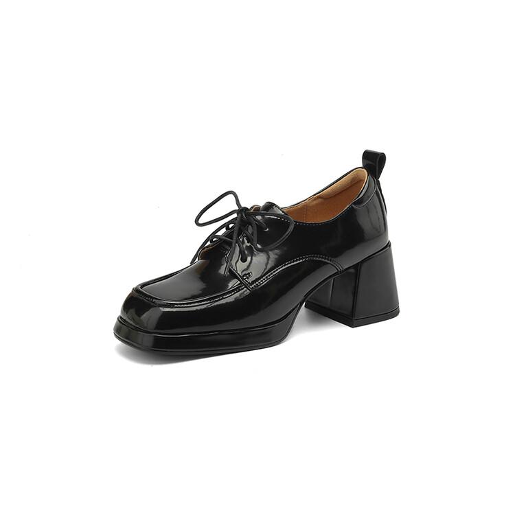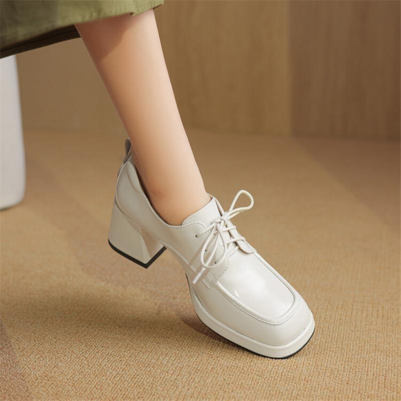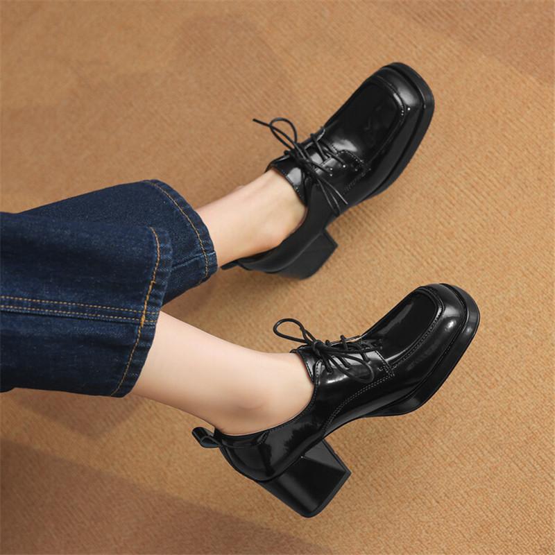 Модные новые весенне-осенние лоферы из спилковой кожи, женская обувь, массивный каблук, квадратный носок, туфли на платформе для женщин, женские туфли на высоком каблуке