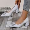 Модные французские туфли-лодочки с острым носком, на толстом каблуке, с кристаллами, пайетками и стразами, 2025 Новые весенне-осенние универсальные банкетные туфли
