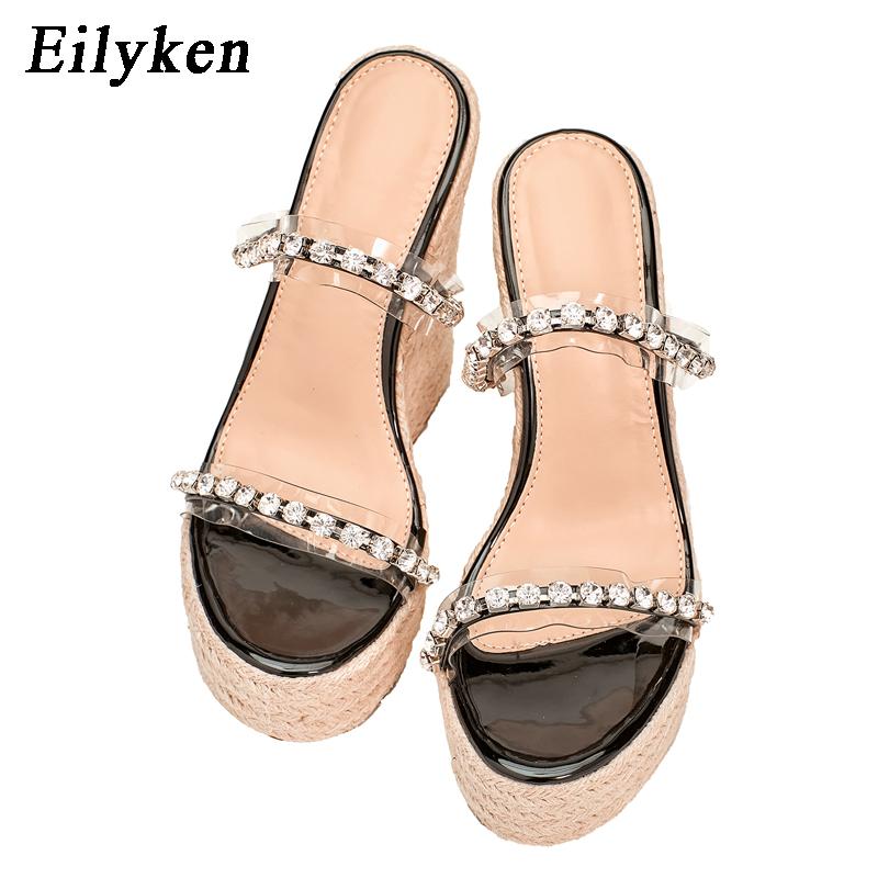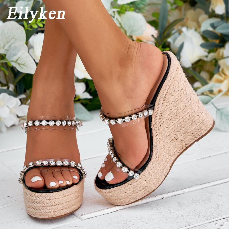 Модные Eilyken 2025 Новые КРИСТАЛЛ Платформа Танкетка Шлепанцы Летняя Обувь с Открытым Носком Женские Сексуальные Супер Высокие Мюли Женские Сандалии