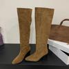 Модная зимняя модель Eilyken, плиссированные женские ботфорты с острым носком, модные панк-квадратные каблуки, длинная обувь, Botas Para Mujer — купить товар онлайн с бесплатной доставкой по всему миру!