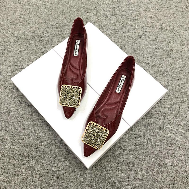 Модные женские туфли-лодочки с острым носком, лето 2025, женская обувь, туфли на мягкой подошве, модная пряжка со стразами, всесезонные одинарные туфли