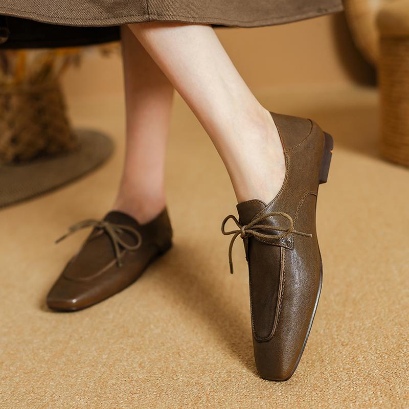 Мода 2025 Мода Квадратный носок Женские Мягкая Натуральная Кожа Низкий каблук Слипоны Однотонные Большой размер 34-40 Повседневная Уличная Обувь Ручной работы