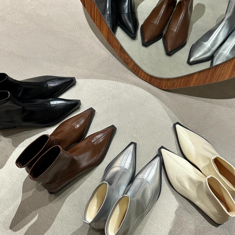 Модные ботильоны с острым носком Женские Новые 2025 Осень и Зима Женские Французские Сапоги Модный Блочный Каблук Облегающие Сапоги Нишевый Дизайн