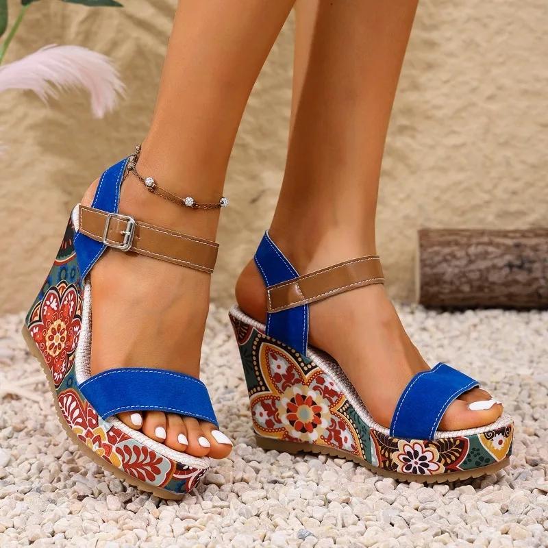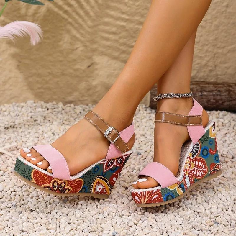 Модная женская обувь 2025 Горячая распродажа Сандалии женские на ремешке с пряжкой Модные сандалии с открытым носком Повседневные сандалии Женские Летние Большого размера Сандалии на танкетке