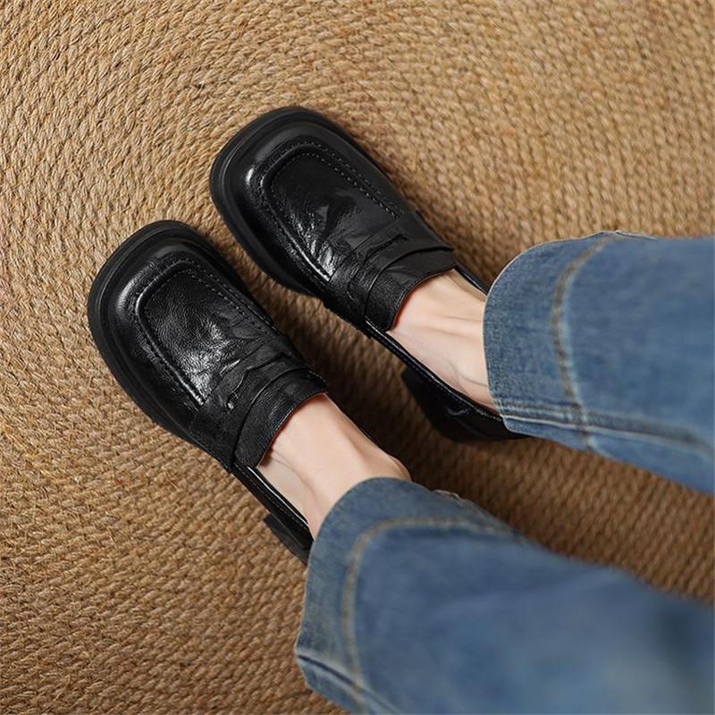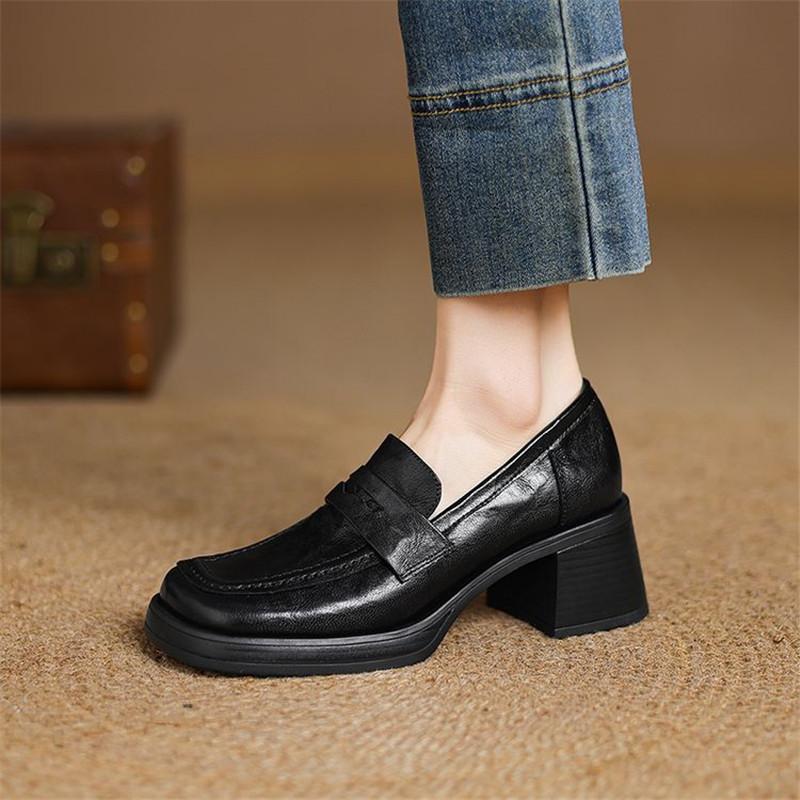 Мода Новая Весна Натуральная Кожа Женская Обувь Квадратный Носок Женские Туфли-Лодочки Обувь для Женщин Высокий Каблук Платформа Лоферы Женская Обувь Женщины