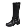 Мода 2024 Новые Зимние Джинсовые Сапоги Женские Ретро Коричневые С Пряжкой Круглый Носок Высокие Сапоги Сапоги До Колена