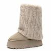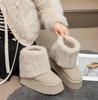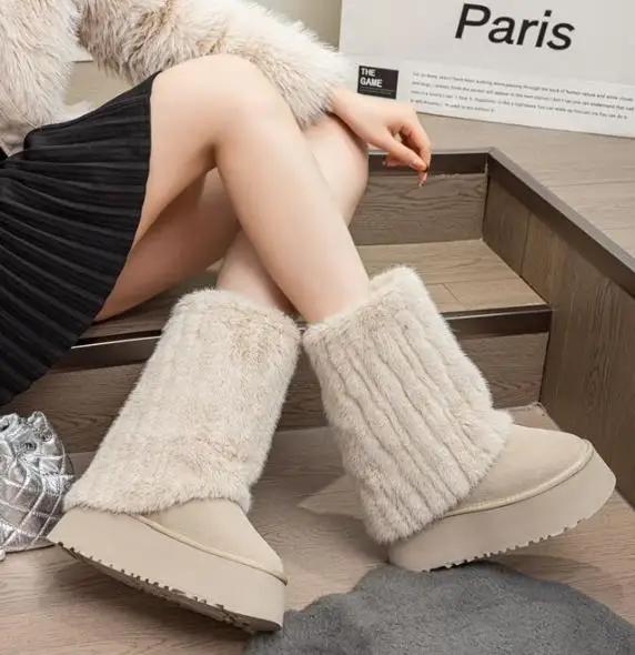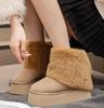 Мода 11 см Коровья кожа Плоские Осенние Женские Мотоциклетные Полусапожки на Платформе Модные Зимние Теплые Плюшевые С отворотом Снежные Сапоги