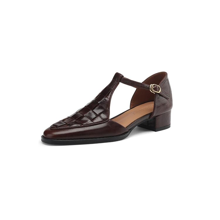 Модные новые летние сандалии из натуральной кожи для женщин 2025, туфли с круглым носком, на массивном каблуке, сандалии с закрытым носком для женщин, обувь из коровьей кожи ручной работы