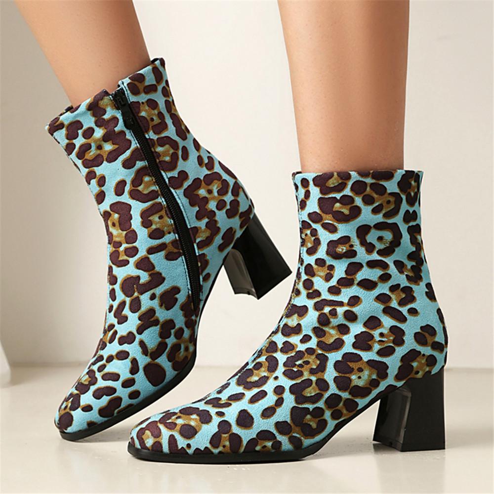 Мода 2025 Осень Высокие Каблуки Ботильоны Большой Размер Леопардовые Женские Сапоги Ретро Острый Носок Женская Обувь Ботильоны на Боковой Молнии Botas De Mujer