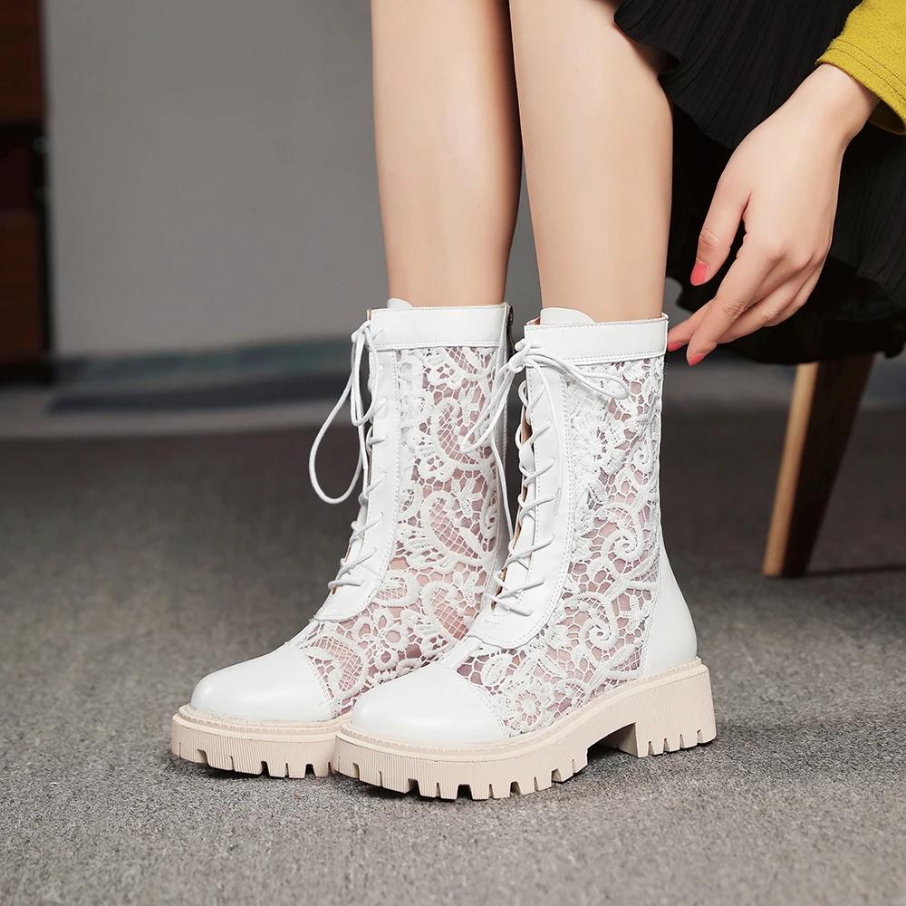 Мода 2025 Новые Женские Ботинки Дышащая Кружевная Сетка На Шнуровке Панк Готика Ботильоны Обувь на Платформе Женские Летние Сапоги Женский Размер 35-45