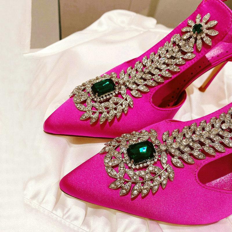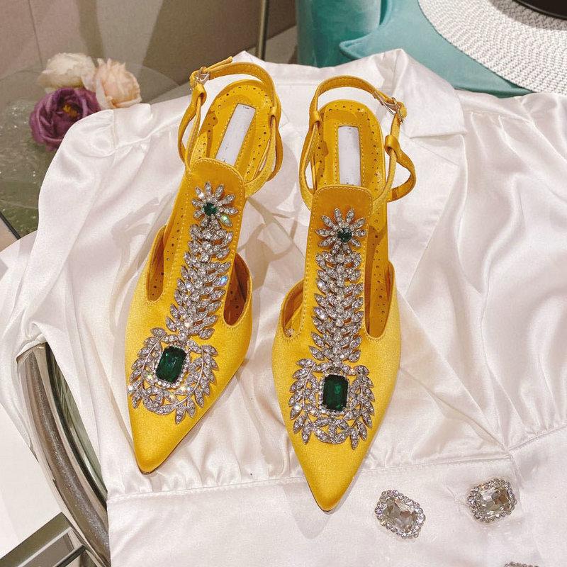 Мода 2025 Лето Новые Острые Туфли-лодочки на Высоком Каблуке Женский Темперамент Сексуальные Бриллиантовые Красивые Свадебные Туфли После Пустоты Сандалии