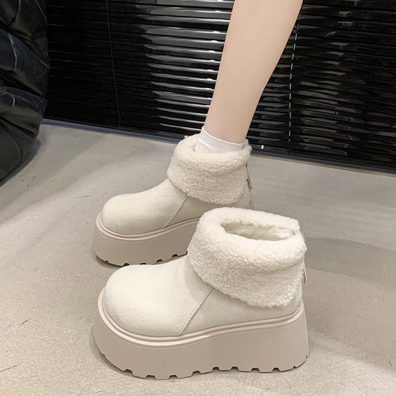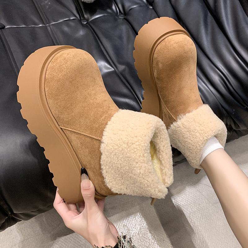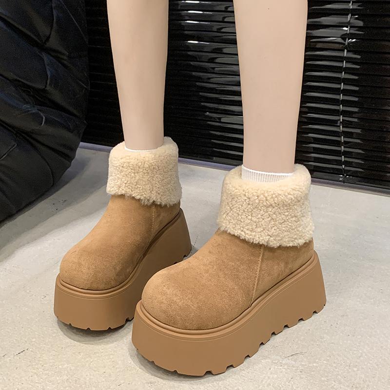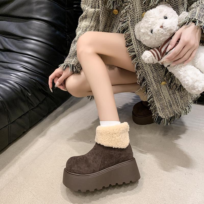 Модная платформа женские зимние ботильоны из замши на среднем каблуке хлопковая обувь короткий плюш теплые ботинки трендовые зимние повседневные ботинки Botas De Mujer