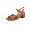Мода 2025 Новые летние сандалии Женские туфли с квадратным носком Массивный каблук Открытый носок Ретро сандалии для женщин Ручная работа Разделенная кожа Женские сандалии