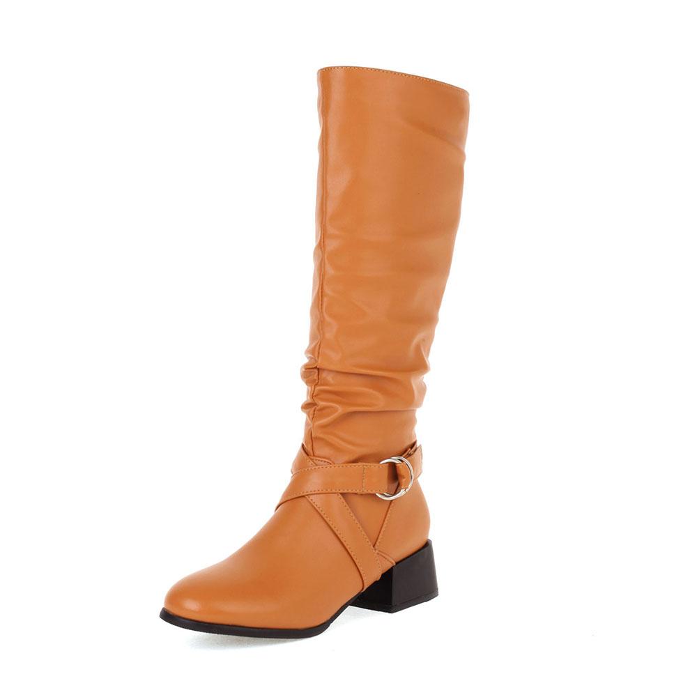 Мода 2025 Белые Женские Кожаные Сапоги до Колена на Молнии Женские Сапоги-Пряжки Длинные Рыцарские Сапоги Женские Боевые Ботинки Женская Обувь на Низком Каблуке Желтый