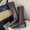 Мода Eilyken Мягкая кожа Заостренный носок Женские ботфорты Модные танкетки Низкий каблук Женская обувь Длинные ботильоны Zapatos De Mujer