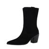 Мода 2025 Новые осенне-зимние женские ботинки Остроносые на толстом каблуке Короткие ботинки Ковбойские ботинки из коровьей замши Обувь для женщин Высокие каблуки
