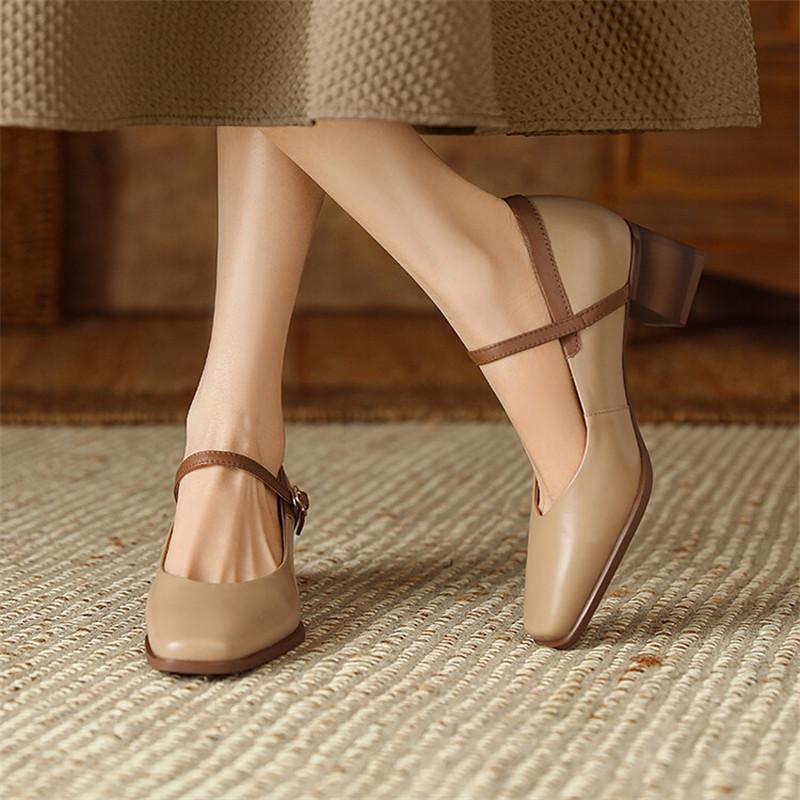 Модные Новые Туфли из Натуральной Кожи Винтажные Женские Туфли Модные Туфли-Лодочки с Квадратным Носком на Массивном Каблуке Весенние Женские Туфли Zapatos De Mujer Туфли Мэри Джейн — купить товар онлайн с бесплатной доставкой по всему миру!