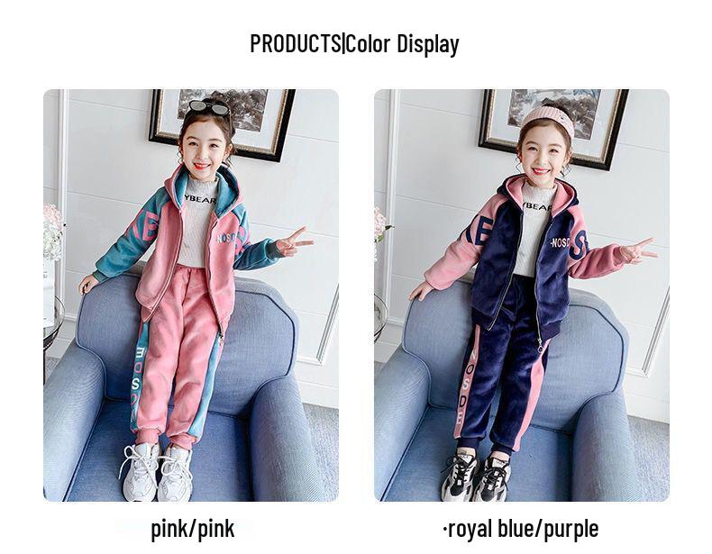 Этот уютный комплект из толстовки и брюк для девочек предлагает идеальное сочетание комфорта и стиля, с толстой велюровой флисовой подкладкой, которая обеспечивает тепло с весны до зимы.. Этот повседневный спортивный костюм с длинными рукавами для дополнительной защиты изготовлен из мягкого высококачественного хлопка.. Идеальный для различных видов активного отдыха или просто для отдыха дома, этот универсальный комплект станет незаменимым дополнением к гардеробу любой молодой девушки.