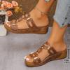 Модные женские тапочки с открытым носком, пляжные тапочки большого размера, сандалии в римском стиле, летняя уличная обувь на танкетке, шлепанцы для женщин