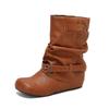 Модные ковбойские сапоги в западном стиле, модные, новые, удобные, с внутренней высотой, женские сапоги, трендовые, универсальные, на молнии, с пряжкой, женские короткие сапоги