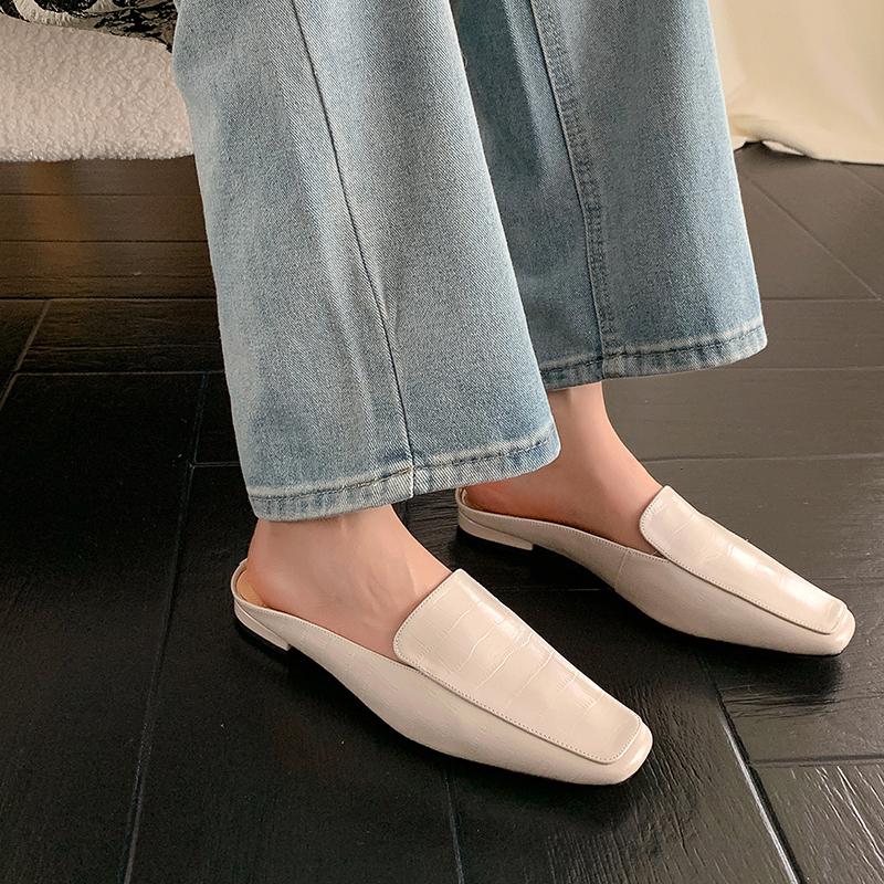 Модные женские ретро полусабо Мюли из натуральной кожи на низком каблуке с квадратным носком, повседневная обувь, женские тапочки, лето 2025, новинка
