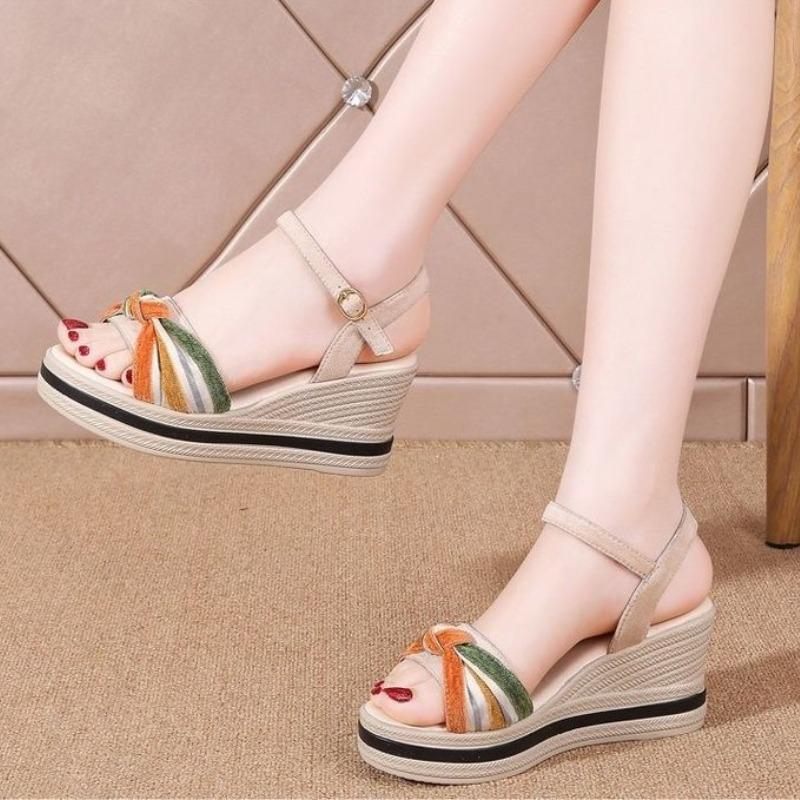 Модная женская обувь Ортопедическая Летняя 2025 Клиновидный каблук Римский стиль Комфортная обувь с высоким каблуком Сандалии для женщин Кожа