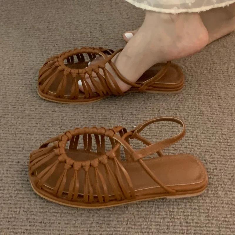 Модная женская обувь Высокое качество Слипоны С ремешком на щиколотке Женские сандалии Летние Однотонные С закрытым носком Массивный каблук Пляжные сандалии Женские