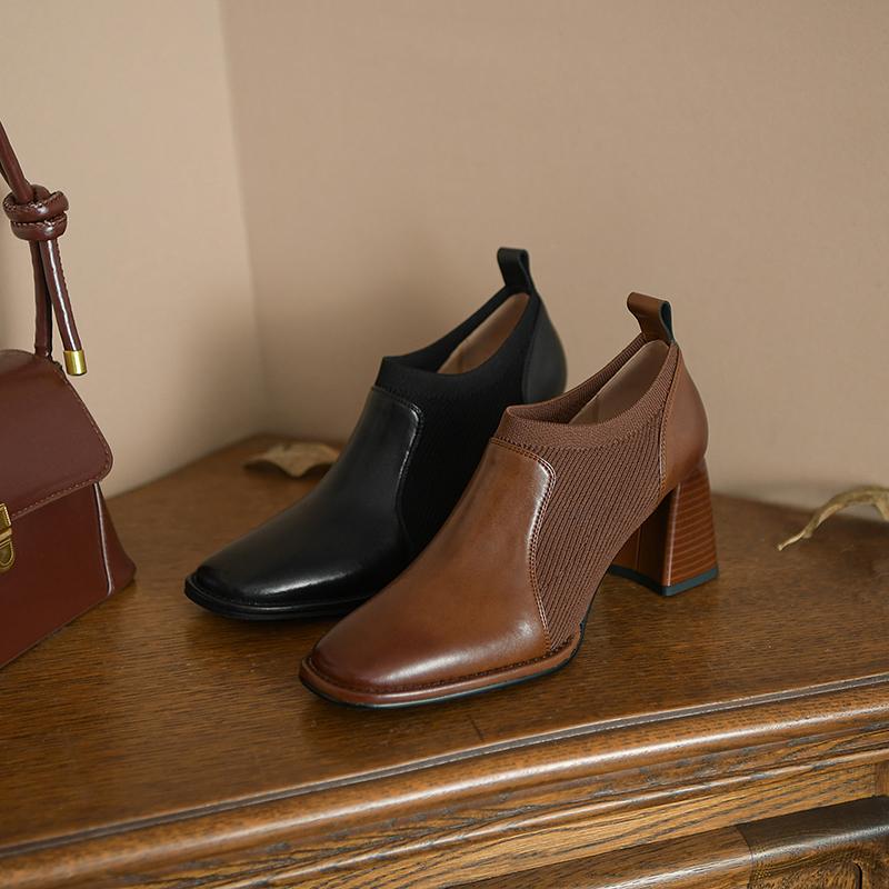 Мода 2025 Весна/Осень Женские Вечерние Туфли на Массивном Каблуке для Выпускного Вечера, Туфли из Натуральной Кожи, Лоферы с Квадратным Носком, Женская Обувь на Высоком Каблуке для Женщин — купить товар онлайн с бесплатной доставкой по всему миру!