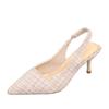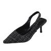 Дизайнерские туфли-слингбэки на высоком каблуке, женские туфли-лодочки синего цвета с острым носком для вечеринок, женские сандалии на тонком каблуке, лето 2025