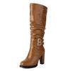 Fashion 2025 Autumn and Winter New Women Boots High Heels Knight Boots Fashion Retro Belt Buckle Knee High Boots Female Size 32-46