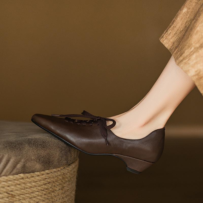 Мода Размер 34-41 Ретро Туфли на низком каблуке для женщин Натуральная кожа Шнуровка Низкий каблук Туфли Винтаж Весна 2025 Новинка Офисная леди Повседневное платье