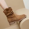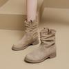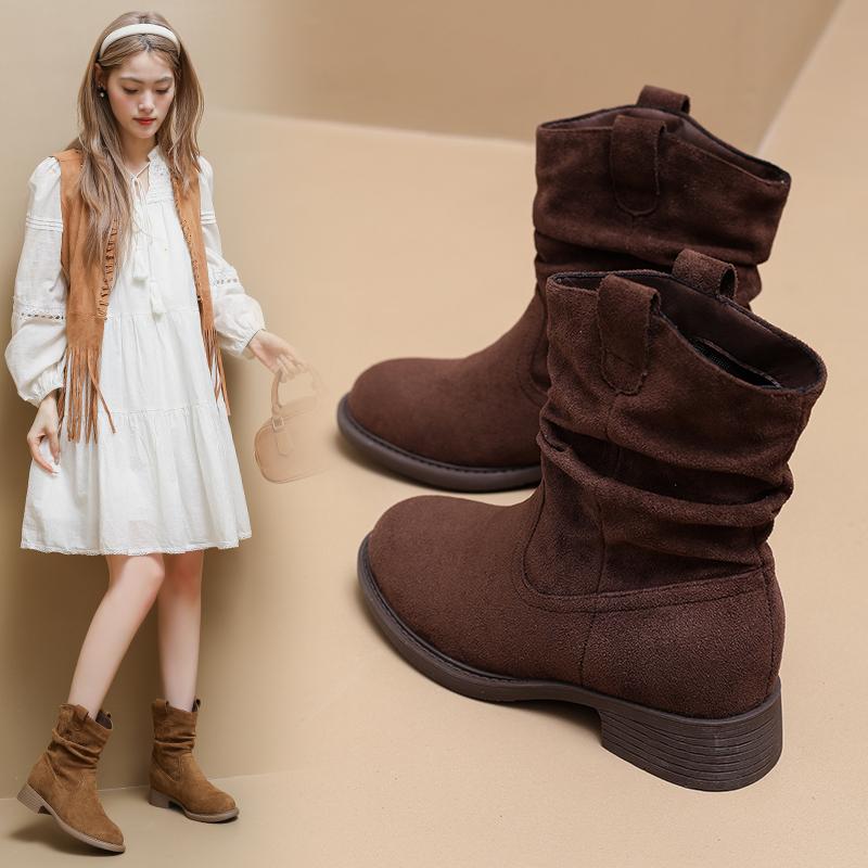 Модные западные ботинки на наборном каблуке Женские модные ботинки до середины икры на массивном каблуке Женская обувь весна-осень Однотонные ретро боты